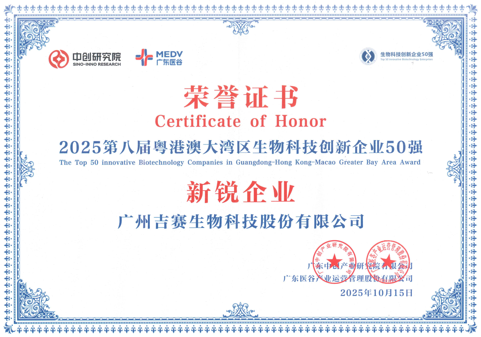 2025第八届生物科技创新企业50强评选于今年6月中下旬启动,生物医药、医疗器械、医疗服务和生命科学商业服务四大领域多家企业积极报名参评。经过评委专家团组织的多维度评估,多场主题评审会议,多次走访深入调研后,吉赛生物凭借在RNA创新疗法领域的持续研发创新实力与强劲发展潜力,荣获“生物创新科技企业50强——新锐企业、最佳人气企业”称号。