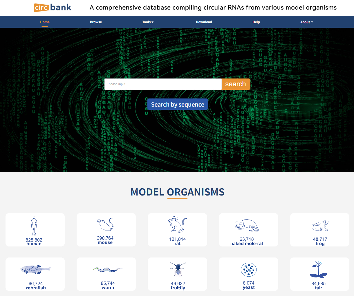特点与适用场景:涵盖人、小鼠等多种模式生物的综合性数据库。提供 circRNA 标准化命名体系、成熟 circRNA 序列、不同组织或发育阶段的表达谱、miRNA 结合位点以及蛋白翻译潜能预测等全方位信息。